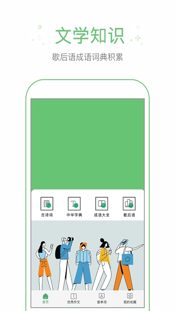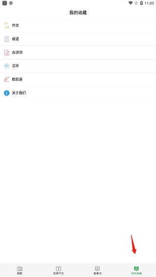 5、收藏的作文、成语、汉子都可以在我的收藏里面快速阅读哦!