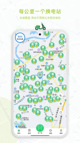 1、地图导航功能可展示电器柜的分布情况与电量状态,助力用户迅速定位到距离最近的换电站。