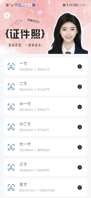 3、在证件照页面中选择你需要制作的尺寸,然后进行制作各需要的证件照即可;