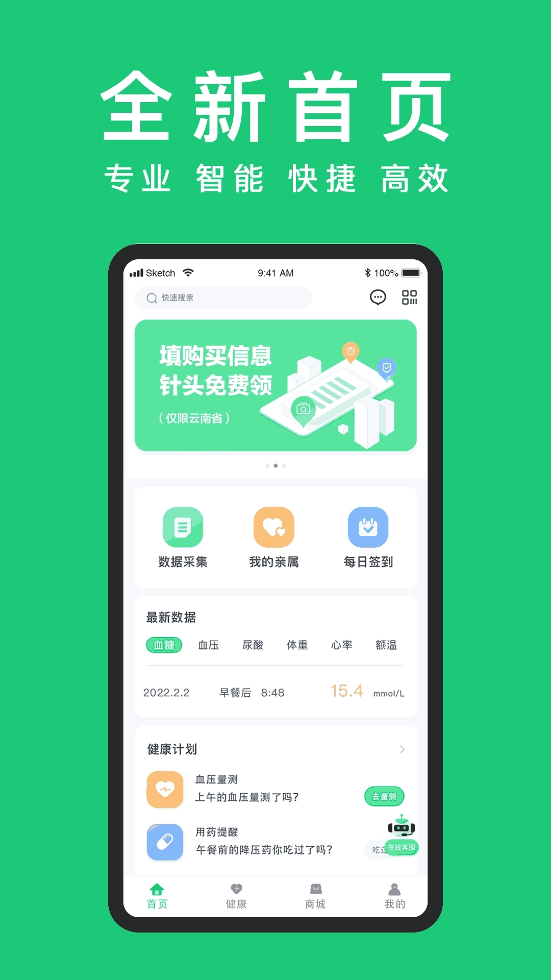 3.糖尿病患者管理难度大、流程繁琐等难题,助力提升糖尿病健康管理水平,为人类糖尿病健康事业发展贡献力量。