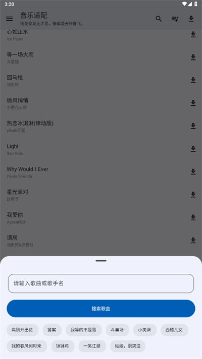 音乐适配,一款超好用的手机软件,能让你畅听任何歌曲。它拥有海量丰富的曲源,并搭载智能技术,可依据你听过的歌以及个人喜好,推送你感兴趣的内容。喜爱听歌的用户,快来试试吧!