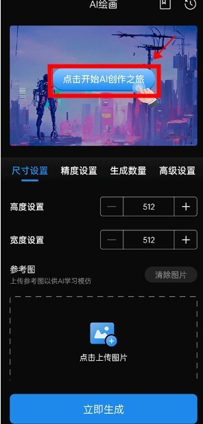 轻点“AI绘画”按钮,随即进入绘画创作界面。