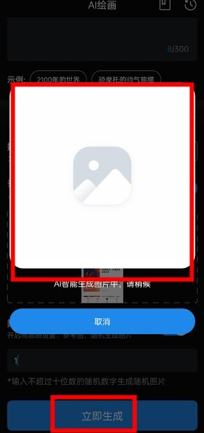 完成设置后,点击“立即生成”按钮,AI会依据描述自动创作出绘画作品。