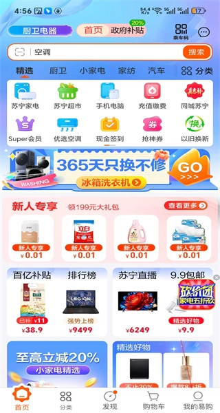 1、商品浏览:用户可浏览苏宁易购电器商城的所有商品,平台商品分类明确,能帮助用户更快捷地定位到想要的商品。
