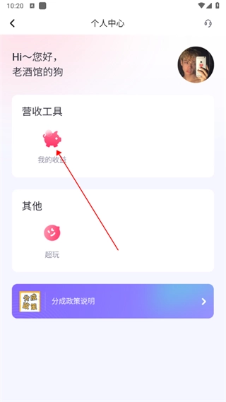 点击“我的收益”选项。
