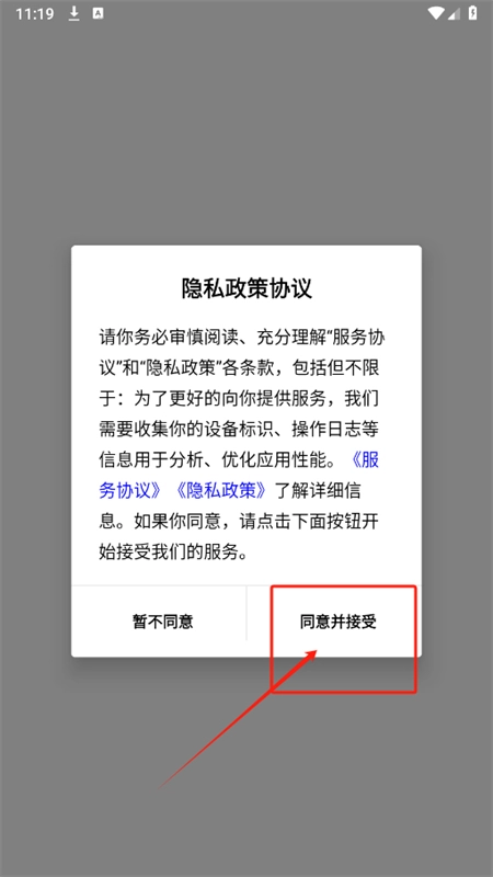 进入主页,需要先同意相关协议政策后进入