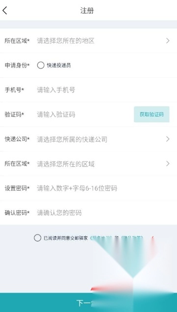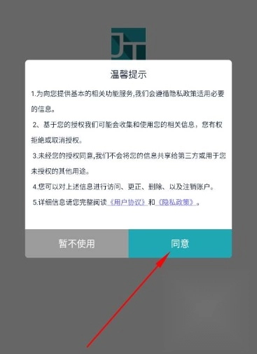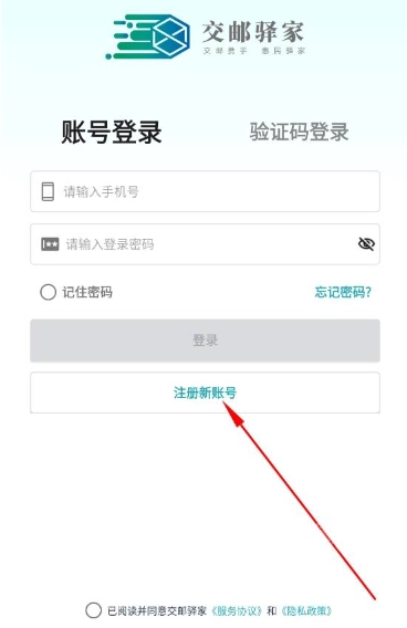 打开交邮驿家阅读协议并点击同意