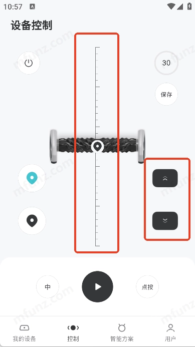 可通过点击上下按钮调节按摩强度,也能直接用手指拖动来调整按摩力度。