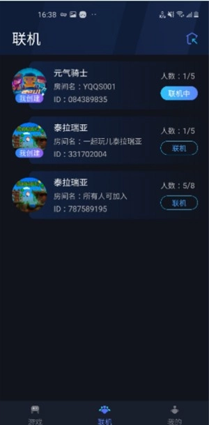 无论是加入他人房间还是自行创建房间,都能在【联机】页面查看已有的房间列表。点击目标房间进入详情页后,再点击页面中的【联机】按钮,就能成功与房间内的其他成员建立联机连接。