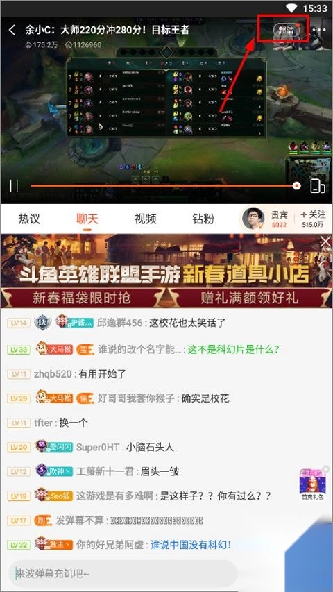 1、首先点开斗鱼直播最新版,然后任意点开一个直播间。