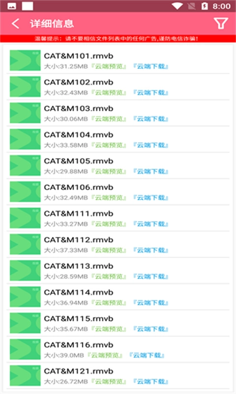 5.每个资源的旁边都配有对应的简介,能让人了解到资源的大小和类型信息。