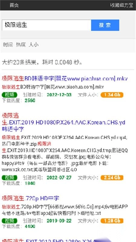 磁力宝能为你带来超级便利的体验和完整的磁力搜索功能,最大程度满足你的需求。这里只有你想不到的资源,没有你找不到的资源,使用起来也非常安全哦。
