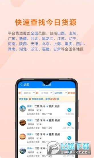 1、货源搜索功能,只需输入起始地、目的地以及车型车长信息,就能精准匹配到合适货源;