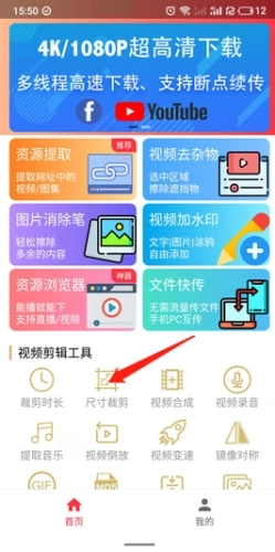 1、启动软件,点击“尺寸裁剪”功能选项,选取对应的视频文件。