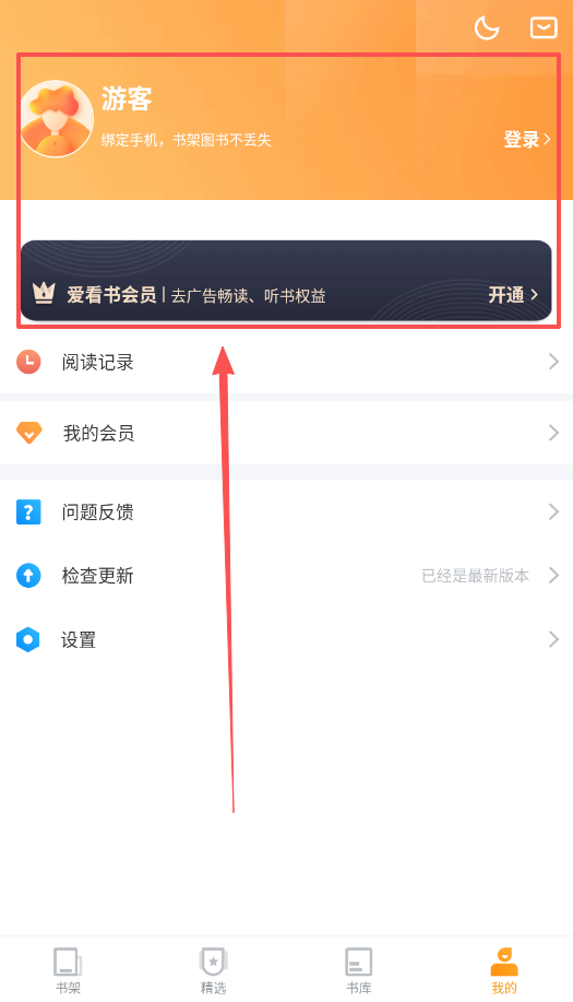 1、新用户首先要做的就是完成账号绑定,这样可以保障你的藏书与阅读记录安全同步,即便更换手机,也不必再担心书单丢失的问题。