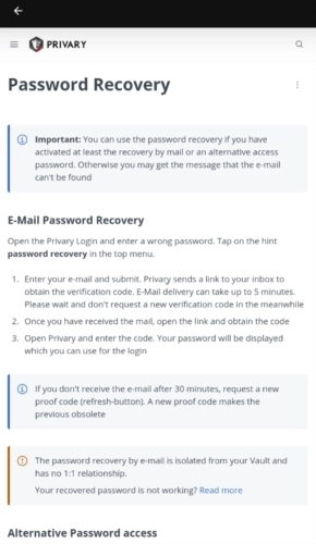 回答:进入Privary私有保险库的设置界面,接着开启加密密码恢复功能。