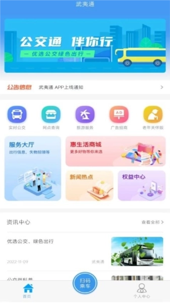 武夷通是一款为便捷出行量身打造的智能应用,能让您的城市生活更添轻松与惬意。用户不必经历繁琐的等待,只需简单一扫,就能完成公交费用支付,还能随时查看实时公交线路和车辆到站时间。除此之外,平台上丰富的公交资讯与热点新闻会为您推送最新动态,让您的出行过程不再枯燥。同时,软件还具备网点查询、旅游服务、广告招商以及惠生活商城等实用功能,全方位满足您多样化的日常生活需求。现在,就用武夷通,开启属于您的便捷出行之旅吧!