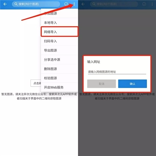 1、打开异次元后,你会发现里面空空如也!这是因为它本身就没有预设内容,需要你手动添加图源地址才行。