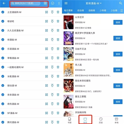 3、短短几秒钟,261个图源地址便添加完成,二次元漫画世界的大门就此开启。「异次元」软件里瞬间被填满,几乎全网的漫画资源都汇聚于此。