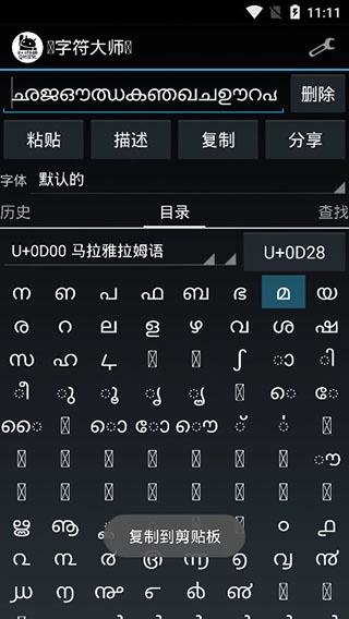 3、主题多元,功能丰富:提供黑白两种主题,用户能依据个人偏好随意切换,为使用过程增添个性化元素。具备字符搜索功能,助力用户迅速定位所需字符;同时支持一键复制选定的特殊字符,操作简便,有效提升使用效率。