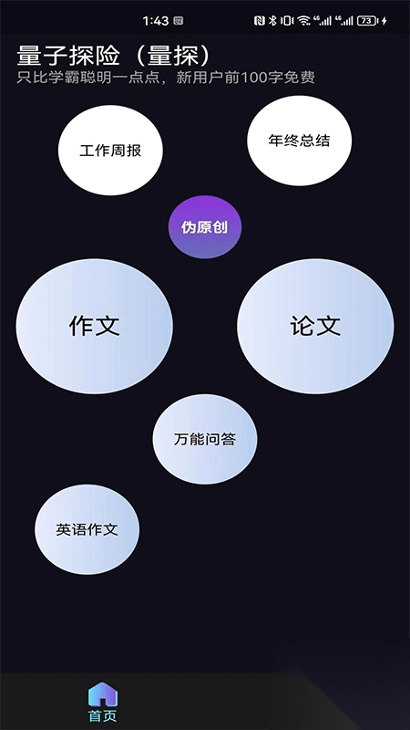 量子探险app堪称一款实力强劲的AI写作工具。借助这款软件,用户能够有效提升作文品质,增强创意思维能力,而且能在短时间内迅速产出优质文章。只需在软件中输入主题,就能随机生成一篇行文流畅的文章。它还支持多样化的生成功能服务,用户可依据自身需求在线操作使用。该软件简单易用、操作便捷,为广大用户带来诸多便利。