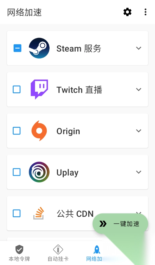 2、勾选steam服务后点击一键加速,按照提示安装证书后即可加速steam