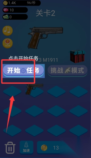 1. 游戏开始时,首先要熟悉武器特性以及操作方式,完成瞄准后,点击进行射击。