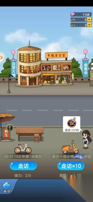 目前有两种走访方式供各位校长选择:左边的自行车图样可进行单次走访,消耗完毕后,体力将随着时间消耗而缓慢恢复,最多可增长到三辆自行车,也就是三次走访。而右边的摩托车图样,可直接进行十连走访,且必得精英学生。