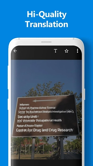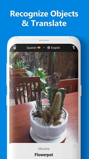 选择“翻译模式”将图像上的文本翻译为任何语言:拍摄任何带文字物体的照片,或从你的图库中选择一张照片。该应用程序将扫描文本并将其翻译成任何语言。