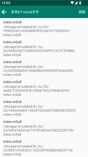 3、提供全盘或自定义扫描功能,快速找到手机中的m3u8视频缓存文件及其分段文件。