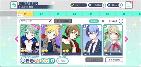 - 初期的当务之急是尽快提升综合力,因为队伍综合力越高,打谱所得的资源较多,刷活动的效率也更高。所以最好先把资源优先投入组成全三星满配的队伍,对一般人而言就已经足以应付日常所需。