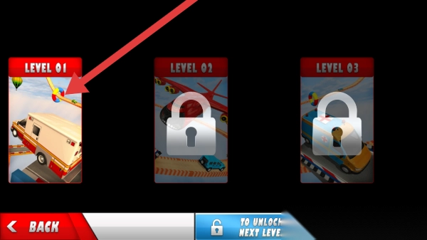 1、在游戏主界面,点击【PLAY】,进入【AMBULANCEMEGARAMPSTUNTS】的特技挑战。