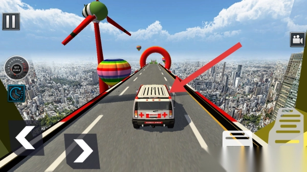 3、操控救护车在高空坡道行驶,把控好方向以避开障碍物,驾车冲过圆环等,完成一系列特技动作。过程中需格外留意速度与平衡的把控。