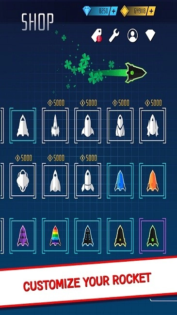 3、丰富解锁内容:玩家可解锁独特的火箭和小径,通过不断游戏积累,定制属于自己的专属火箭,提升游戏个性化和成就感。