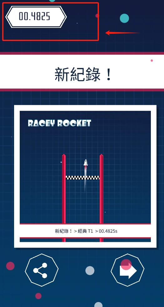3、游戏结束后显示用时和新纪录,可分享成绩或再次挑战。