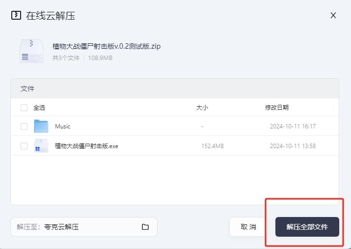2、接着点击“解压全部文件”。