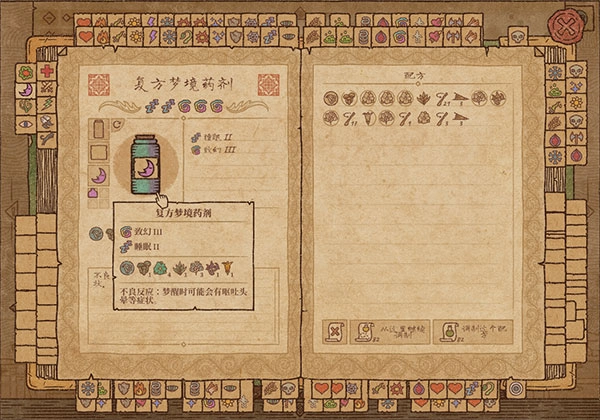 4、复方梦境药剂:具备致幻III以及睡眠II的功效,然而使用之后或许会产生如梦醒时呕吐、头晕之类的不良反应。