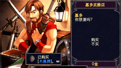 4、雷诺给了300G,购买装备出发吧(剑200G,盾100G)