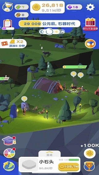 《进化地球》是一款具有模拟玩法的游戏。在游戏里,玩家将穿越回到公元前40000年的石器时代,通过收集原子来塑造世界。游戏中的原子会随时间自然积累,利用这些原子,玩家能够创造出各式各样的文明以及独特的领地地形。在这里,玩家就如同世界的上帝,可随心所欲地改变地形。不仅如此,玩家还能通过研究全新科技来提升文明等级,进而加快收集原子的速度。《进化地球》玩法简便,每天只需游玩片刻,就能真切感受到文明的发展与进步。