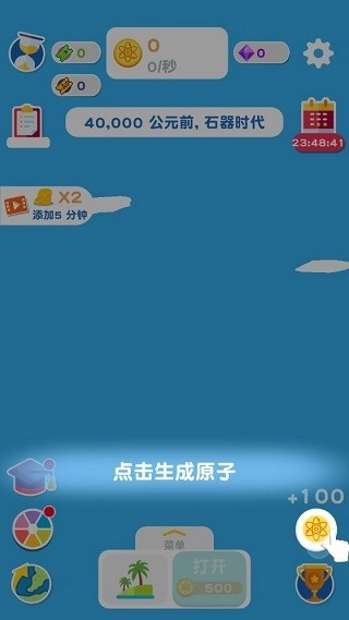 接下来,请持续点击“原子”按钮,持续不断地收集更多原子。