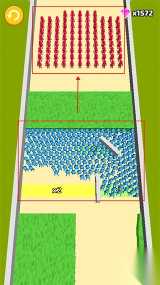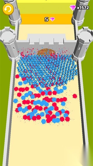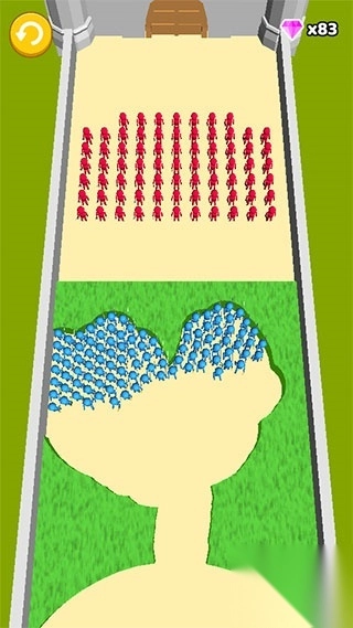 4、建立好小兵军队就可以开始对拼了,我们需要点开障碍让小兵战斗,每一个蓝色小兵会抵消一个红色小兵;