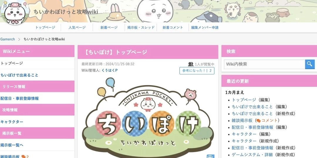 由于这是一款外服手游,国内相关消息相对较少。若想获取更多信息,建议使用日文原文名“ちいかわぽけっと”进行搜索。要是还想查找更多内容,可将原文名与英文组合,例如“ちいかわぽけっと wiki”,也可以灵活采用中日混用的汉字来搜索,像“ちいかわぽけっと 攻略”“ちいかわぽけっと 预约”这样。