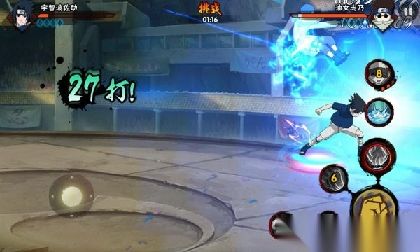 由于战力的关系,生存挑战副本在受击后出保护的时间会比决斗场晚很多,玩家可以使用熟悉的忍者进行疯狂的连击。前提是要注意对方的奥义点和替身CD,不能太贪。