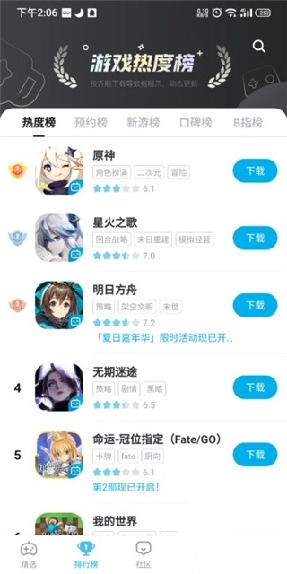 另外,值得一提的是,B站游戏中心为让广大玩家能直观了解哪些游戏值得玩、哪些可尝试,准备了各类分类排行榜,像热度榜、新游榜、口碑榜、B指榜等等。不同榜单能为玩家提供有益参考。1. 众多游戏独家率先发布