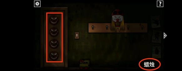 走进带有小丑头像的房间,把地上的蜡烛取走。接着依据红色书籍里有关月亮朝向的提示,去调整门上的笑脸。不过,由于目前关键道具缺失,所以先不进入该房间。