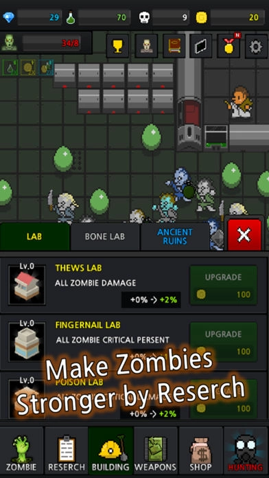 《培育僵尸僵尸工厂》是一款专注于僵尸培育养成的游戏。在游戏里,你要在僵尸工厂中持续培育出实力强劲的僵尸,通过合成的方式,能进一步提升僵尸的实力。快来组建你的专属僵尸部队开启狩猎之旅吧!而且,游戏中还设有远古遗迹等待你去探索开发,借助这些遗迹,你将有机会培育出更为强大的僵尸。