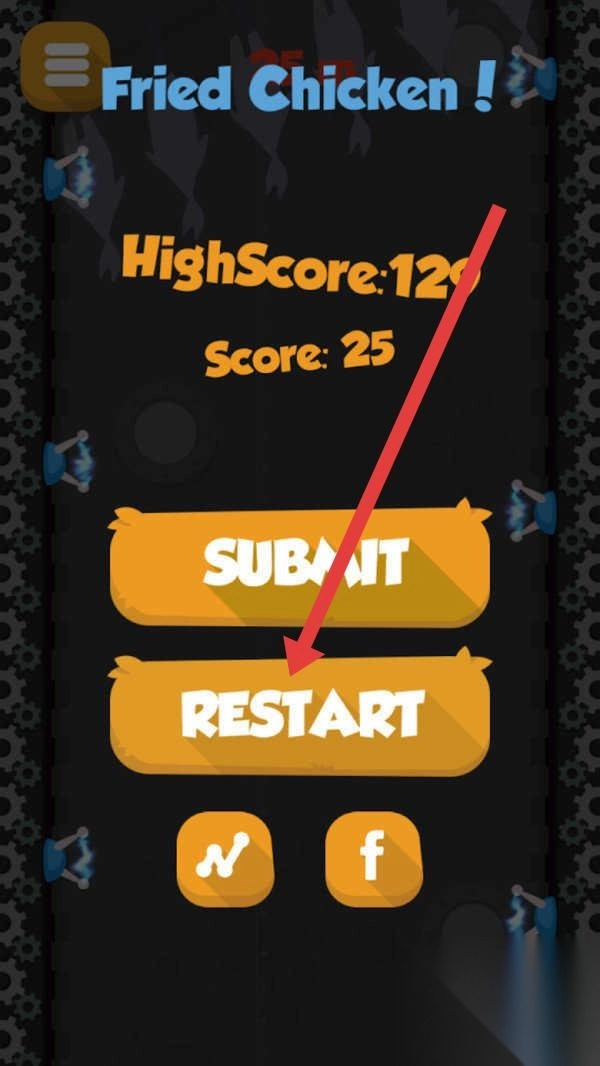 3、在结算界面,如果您想要重新游玩以提升分数(当前分数:25),点击【RESTART】,即可再次开启小鸡跳跃挑战,向更高纪录发起冲击。