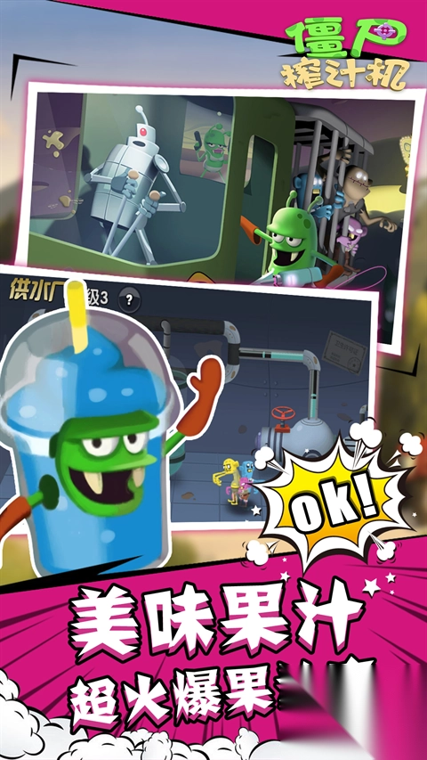 在游戏里,玩家扮演一名外星人,经营着一家专属于自己的果汁店。但这果汁店的原材料可不是常见的水果,而是一群蠢萌的小僵尸。想获取这些“原材料”可不容易,你得开着小飞船去打僵尸。虽说过程有点危险,不过能收获僵尸果汁和大量奖励,倒也值得。