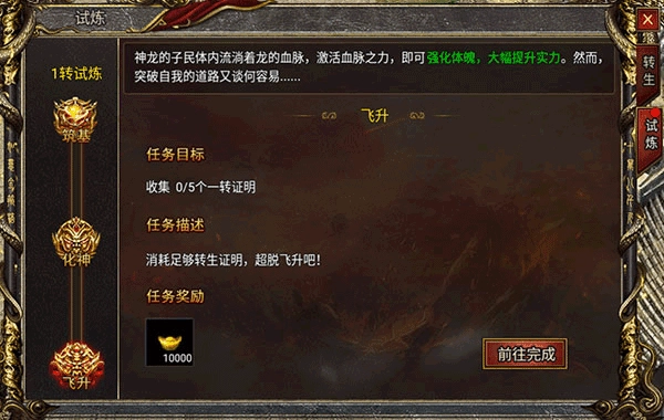 第三重飞升,需要消耗到一定的转生证明才能完成任务,相对于前两重,这一次需要去副本进性击杀怪物来获取转生证明;