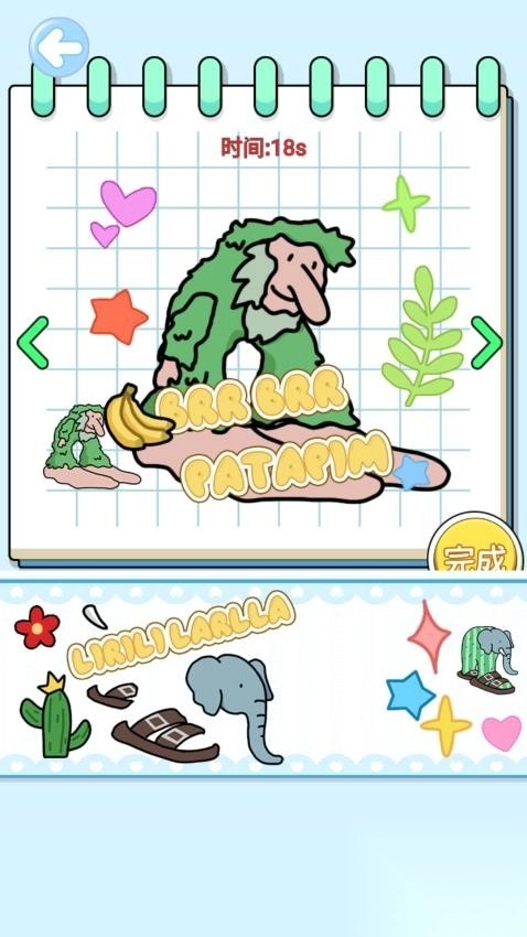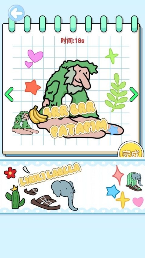 4、任务系统循序渐进,包含120个难度递增的挑战,从简单装饰到复合创作,逐步提升审美要求,完美完成会奖励稀有贴纸套装。